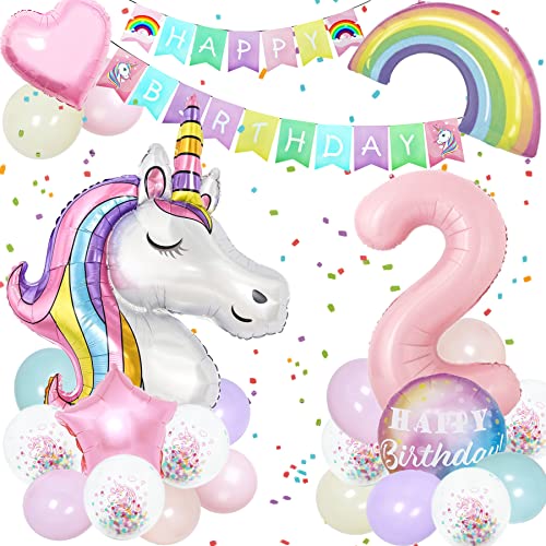 Enhörning födelsedagsdekoration, 3D enhörning ballong, jättefolieballong makaron 2, enhörning folieballong set med Happy Birthday-banner, regnbåge molnballonger för flickor födelsedag festival dekoration