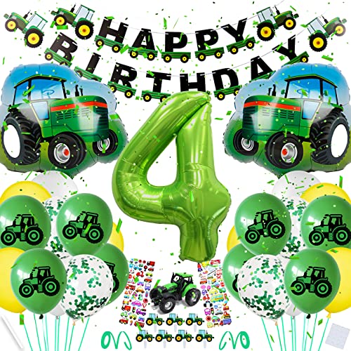 Traktorfödelsedagsdekoration 4 år pojke, traktor dekoration barns födelsedag 4, jättefolieballong nummer 4, födelsedagsdekoration traktor 4 år, traktorballonger födelsedagsdekoration med Happy Birthday-girlang
