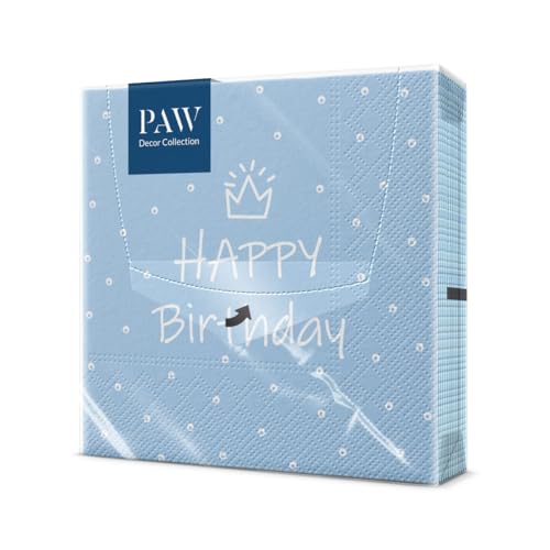 PAW – servetter 3 lager (33 x 33 cm) I 20 stycken I perfekt för fester, födelsedagar, firanden I födelsedag bordsdekoration – färgglada pappersservetter med motiv – blå Happy Birthday-I Special Day