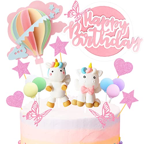 Enhörning Tårtdekoration Födelsedag - 23 Stycken Happy Birthday-Dekoration Med Regnbåge, Stjärna, Hjärta, Färgglada Ballonger - Tårta Topp