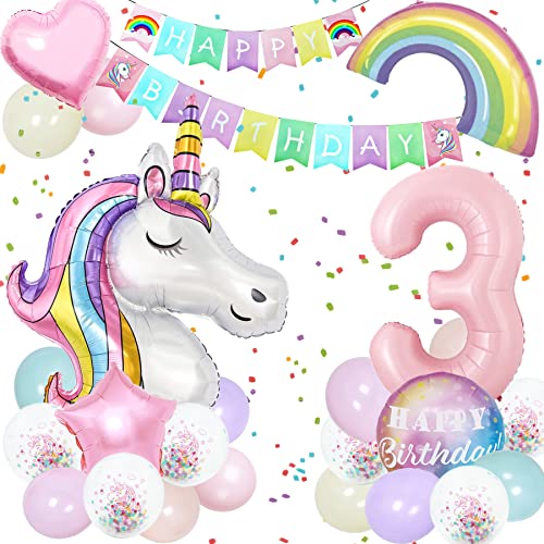 Enhörning födelsedagsdekoration, 3D enhörning ballong, jättefolieballong makaron 3, enhörning folieballong set med Happy Birthday-banner, regnbåge molnballonger för flickor födelsedag festival dekoration