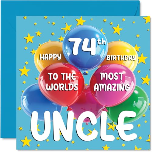 74:e farbror födelsedagskort - World's Most Amazing Uncle - Happy 74th Birthday kort för farbror från brorsdotter brorson, 145 mm x 145 mm ålder 74 sjuttiofyra gratulationskort till farbror