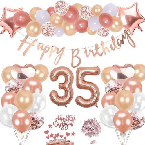 35. Födelsedagsdekoration roséguld set, helium hjärta nummer folieballonger Happy Birthday-banderoll ballonger konfetti bord ballonger tårta dekoration present till 35 år flicka kvinna kvinnor party