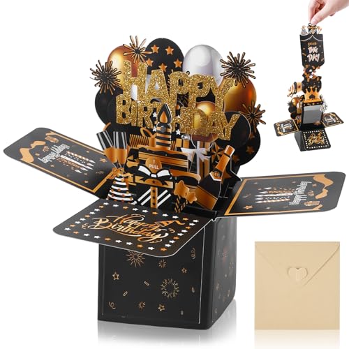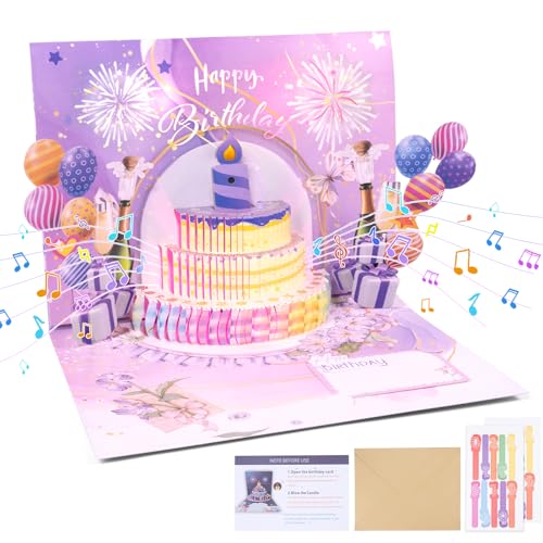 Carehabi födelsedagskort med musik och ljus, Happy Birthday-kort, pop up tårta födelsedagskort med musik och ljus 3D-kort födelsedag presenter för kvinna män flickvän