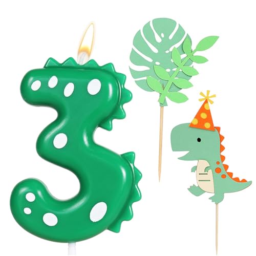 Födelsedagsljus siffror 3, dinosaurieljus 3 födelsedag med tårtdekoration, ljus 3, gröna ljussiffror, dino Happy Birthday-tårta topp, dino födelsedag dekoration 3 år baby party
