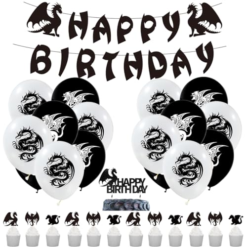 SUNSK Drake, födelsedagsballonger, latexballong, Happy Birthday-banner, drake, tårta, topper, fantasifest, dekoration för barn, 42 stycken