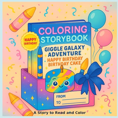 Giggle Galaxy Adventure: Coloring Storybook - Happy Birthday, Birthday Cake