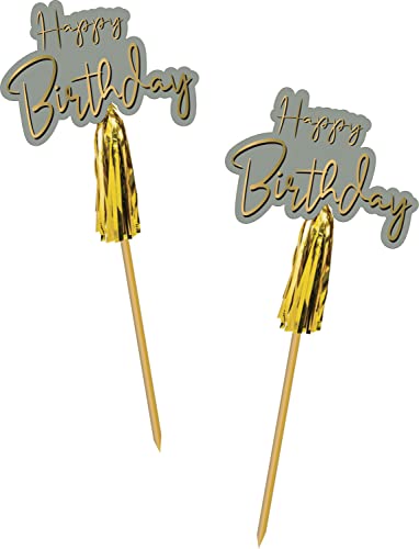Folat 68489 Golden Dawn Happy Birthday Sticks 12 cm 12 Bitar-Happy Cake Toppers födelsedagsfest dekoration, grå