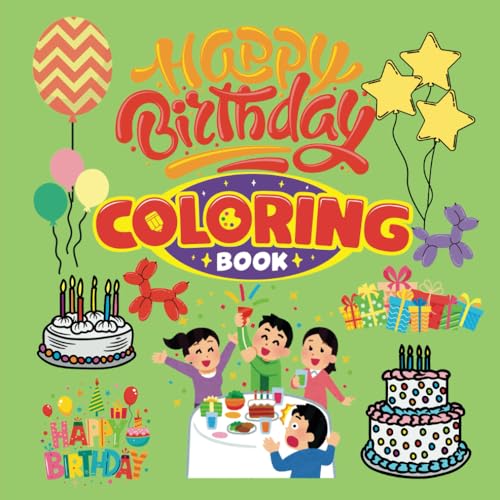 Happy Birthday Coloring Book for Kids: Fun Party Scenes with Balloons, Cake & Gifts – Perfect Birthday Gift for Boys & Girls Ages 4-8