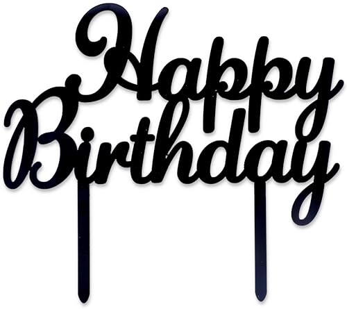 Dekora - Födelsedag Tårtdekoration | Happy Birthday Cake Topper Svart - Mått 12 x 12,5 cm