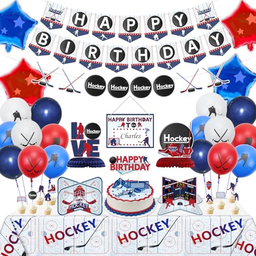 Hockeydekorationer – Happy Birthday-banner, bordsduk, bordsställ, cake-toppar, ballonger för barns födelsedag och sportfest