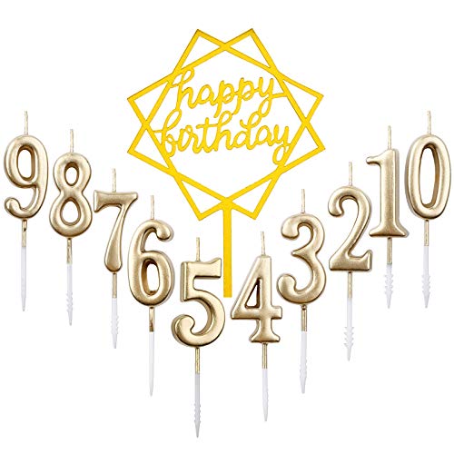 XINDA 10 Pieces Number 0-9 Birthday Number Cake Candles 1pc Letter Happy Birthday Glitter Cake Topper Decoration Cake Number Digital Candles for Birthday Party Wedding (Gold)
