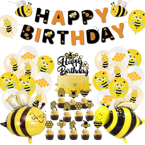 Sprinlot Ballong Bee Födelsedagsdekoration, Ballong Bee med Happy Birthday Banners, Party Bee Ballongs, Födelsedag Dekoration Bee Cake Topper för Festtema Bee pojkar och flickor