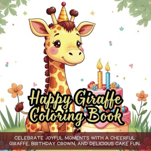 Happy Giraffe Coloring Book: cute birthday giraffe coloring book, fun animal celebration coloring book, adorable cake crown giraffe book, joyful ... delightful giraffe celebration book for kids