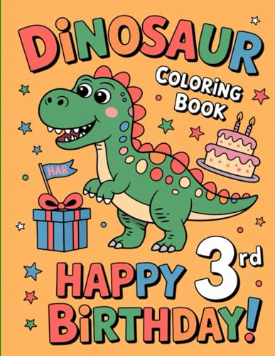 Dinosaur Coloring Book- Happy 3rd Birthday!: Cute Dino with cake, balloons - Perfect for 3-Year-Old Boys and Girls!