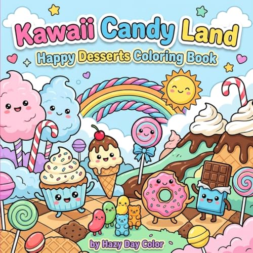 Kawaii Candy Land: Happy Desserts Coloring Book | Cute Kawaii Coloring Book for Kids, Teens and Adults Featuring 40 Adorable Dessert Designs, Sweet ... Land Scenes and Relaxing Stress Relief Art