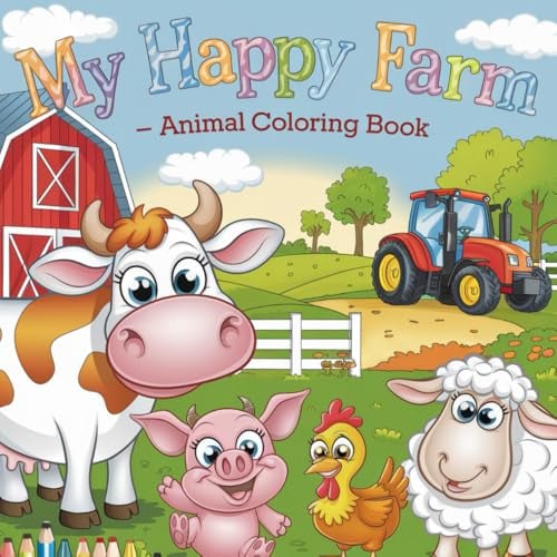 Happy Farm: Coloring pages about farm animals for Preschool Children Ages 3-8