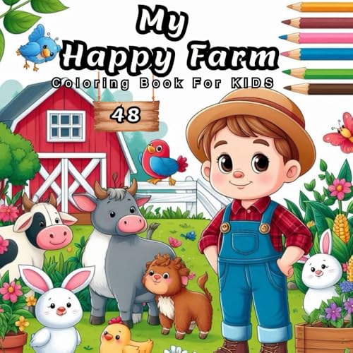 Happy Farm: A Fun Coloring Book for Kids: 50+ Playful Farm Animal Drawings & Scenes - Ideal for Boys & Girls Ages 4-7