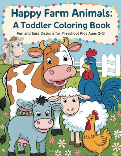 Happy Farm Animals: A Toddler Coloring Book: Fun and Easy Designs for Preschool Kids Ages 2-5!