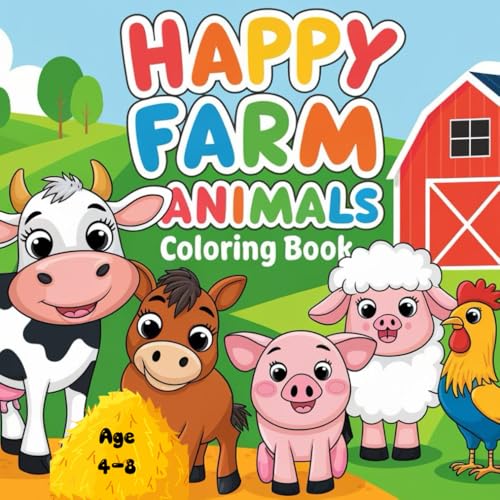 Happy Farm Animals: Coloring Book for Kids Aged 4 to 8