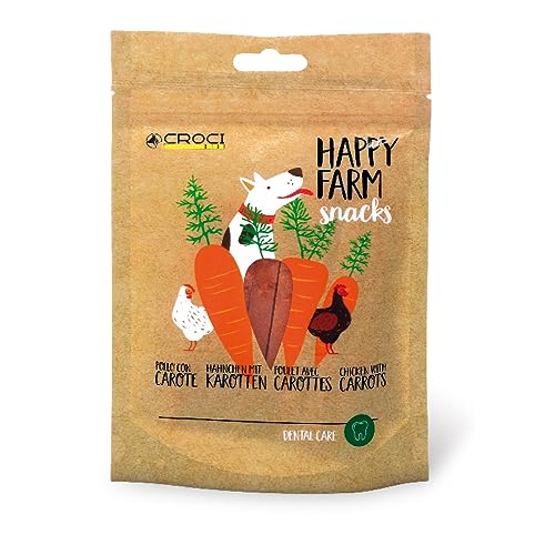 Croci Happy Farm tuggpris för hundar, naturligt hundsnacks, proteinkomplementärmat med grönsaker, kyckling och morötter, 80 g