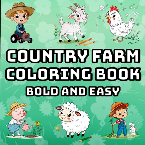 Country Farm Bold and Easy Coloring Book: 50 Big, Simple, Fun and Super Cute Happy Farm Animals Scenes for Boys & Girls, Toddlers, Preschool and Kindergarten