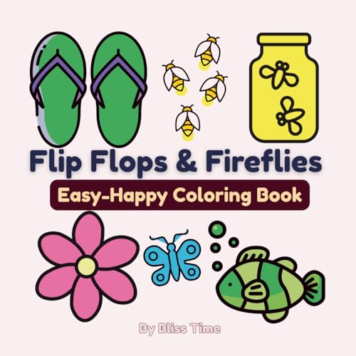 Flip Flops and Fireflies Easy-Happy Coloring Book: 30+ Bold and Easy Designs for Toddlers, Teens, or Adults to Celebrate Summer. Relief stress and ... beach art, swimming gear & seashells.