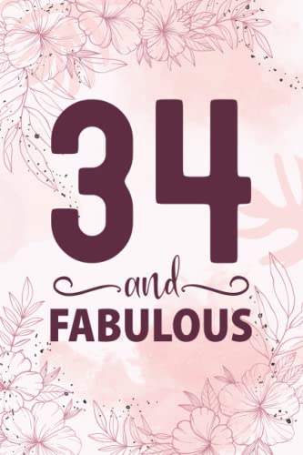 34th Birthday Gifts For Women: 34 Year Old Birthday Notebook: Cute Pink 34 And Fabulous Notebook Filled With Motivational Quotes About Birthdays, 34th ... or Girlfriend, Best Happy Birthday HBD Gift