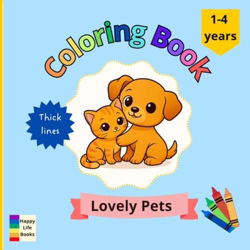 Lovely Happy Pets Coloring Book for kids: 20 lovely pages for coloring: Bold and Easy Coloring Book