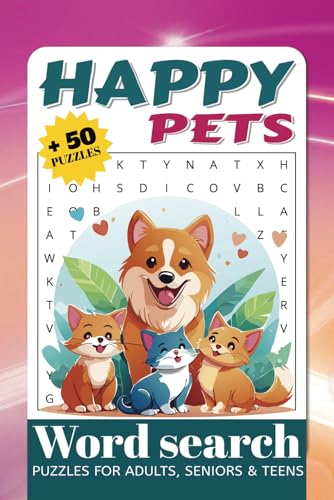Happy Pets Puzzle Book: Word Searches with Easy to Read Print about Pets, Animals, Small Pets and more | 6x9 inches, 110 pages, 50 + Puzzles | An ... Gift for Vacations, Holidays and Free Times