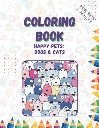 Happy Pets Coloring Book: Animal Coloring Book. 50 Adorable Illustrations abut Playful Dogs, Cuddly Cats.: Fun and Relaxing Cat and Dog Coloring Pages. Best Gift for Young Pet Lovers.