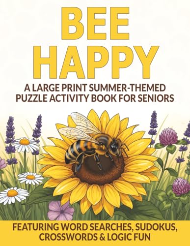 Bee Happy: A Large Print Summer-Themed Puzzle Activity Book for Seniors — Featuring Word Searches, Sudokus, Crosswords & Logic Fun
