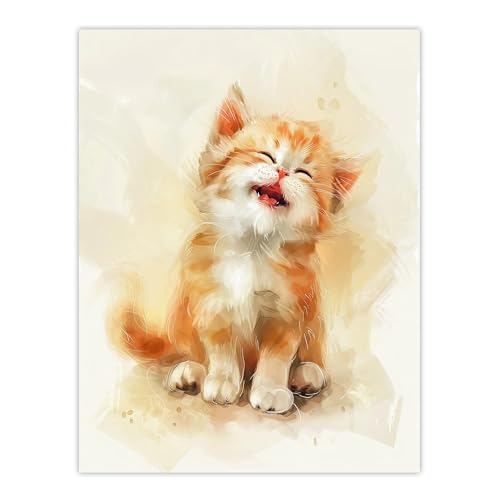 Artery8 Cat Lover Cute Happy Fluffy Ginger Ragdoll Kitten Living Room Large Wall Art Poster Print Thick Paper 18X24 Inch