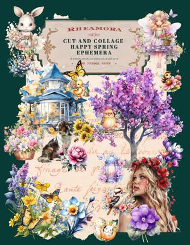 CUT AND COLLAGE HAPPY SPRING EPHEMERA junk journal paper: over 350 premium print color desings ideal for paper crafts, card making, scrapbooking, ... diary embelisments, background paper and more