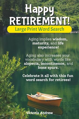 Happy RETIREMENT! Large Print Word Search: Aging implies wisdom, maturity, and life experience! Aging also increases your vocabulary with words like ... ALL with this fun word search for retirees!