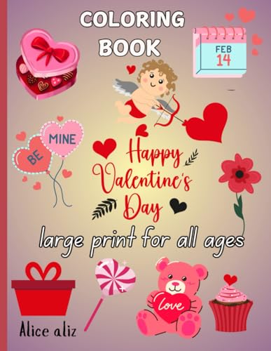Valentine's Day Coloring For Kids and Adults: Large print a happy valentine's day coloring book,50 themed different design for all ages ,kids and adults.