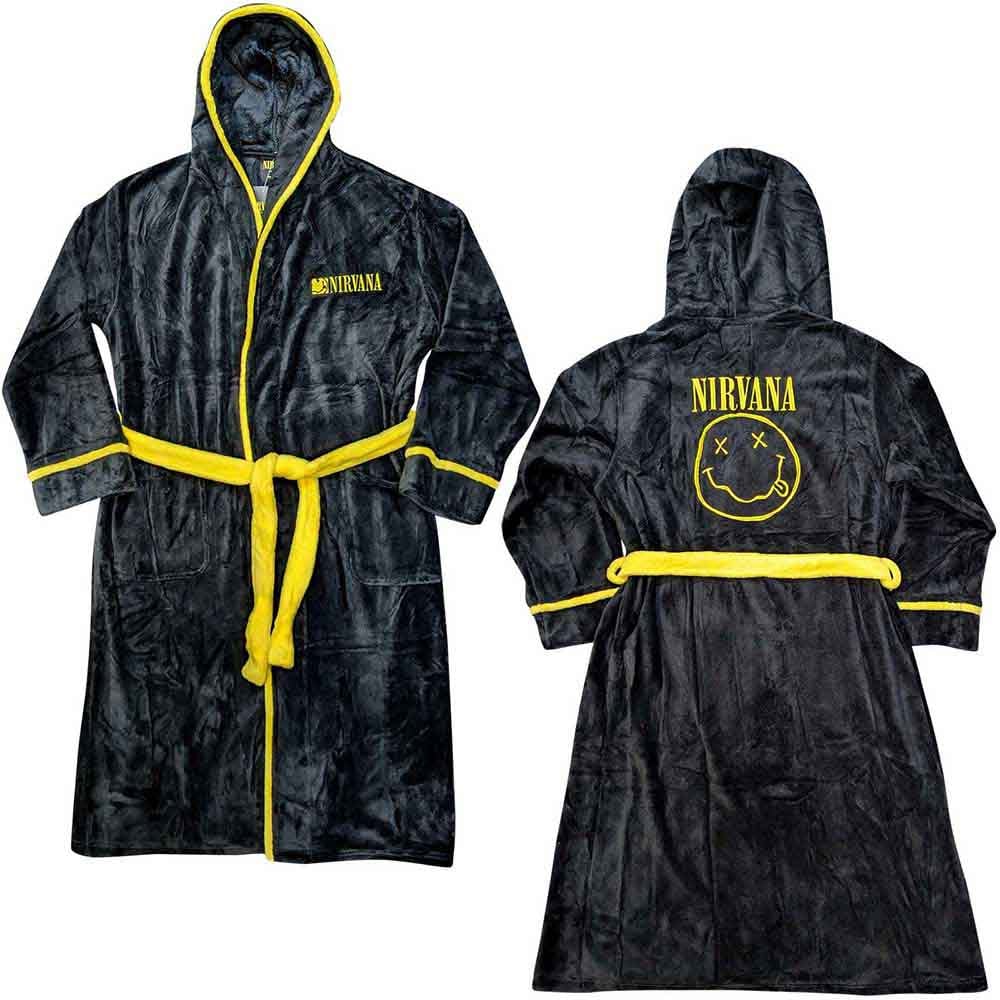 Nirvana: Unisex Bathrobe/Yellow Happy Face (Black) (Back Print) (Large - X-Large)