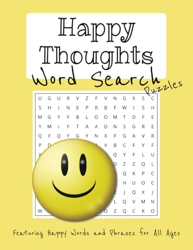Happy Thoughts Word Search Puzzle Book: Word Searches with Easy to Read Print About Happiness, Happy Thoughts, Calming Ideas | 8.5x11 inches, 110 ... For Mom, Dad, Teacher, Holidays, Birthdays