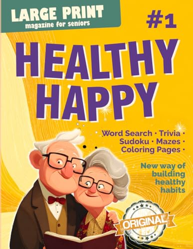 Large print magazine for seniors Healthy Happy. A Monthly Habit + Cognitive Activity Book. Issue 1: A Gentle Guide to Feeling Good Every Day