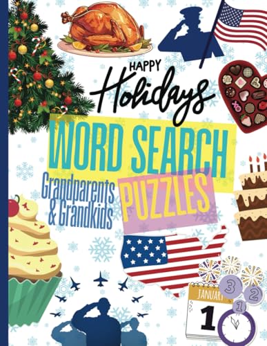 Happy Holidays Word Search Puzzles for Grandparents & Kids, Fun Seasonal Activity Book for Families 110 Pages Large Print 8.5 x 11"