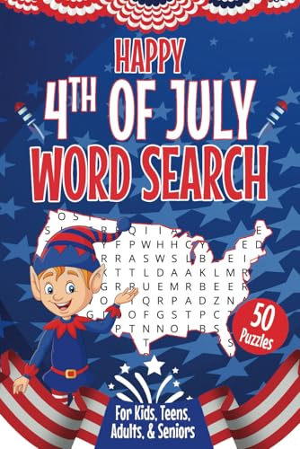 Happy 4th of July Word Search for Adults and Seniors: 50 Fun Themed U.S. Independence Day Puzzles Large Print for Kids and Teens