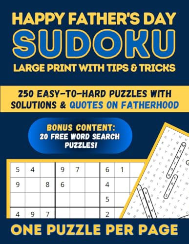 Happy Father’s Day Sudoku Large Print with Tips and Tricks: 250 Easy to Hard Puzzles with Solutions and Quotes on Fatherhood