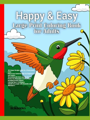 HAPPY & EASY Large Print Coloring Book for Adults: 40 Unique Designs made by a Professional Artist Bold & Easy Varied Designs for Beginners and ... & Stress Relief Incl Positive Quote
