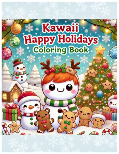 KAWAII Happy Holidays Coloring Book: 50 unique and cute stress relieving coloring images for kids and adults, 8.5" x 11" (Paperback - Large-Print)