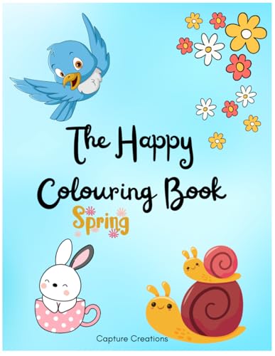 The happy colouring book: Easy Spring Themed: 16 Simple, Large Print Pages to Relax and Unwind with Animals and Flowers, Colour Your Way to Calm