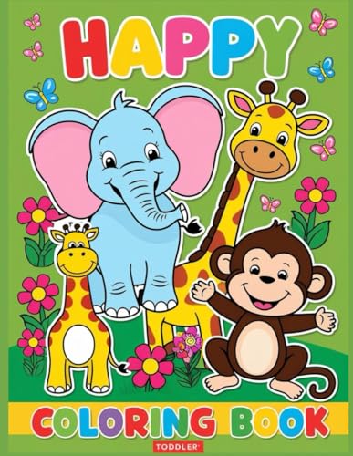 Happy Animal Coloring Book for Toddlers: Adorable, Large Print Animals Easy and Fun to Color for Kids 1-4, Homeschool, Preschool, or Kindergarten