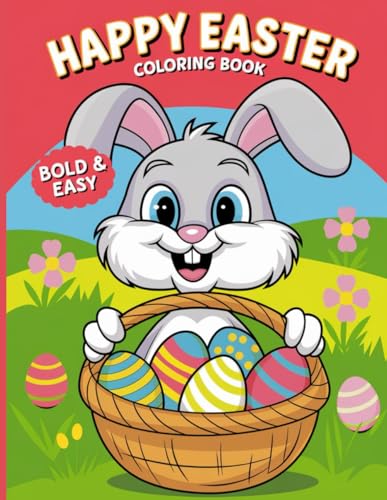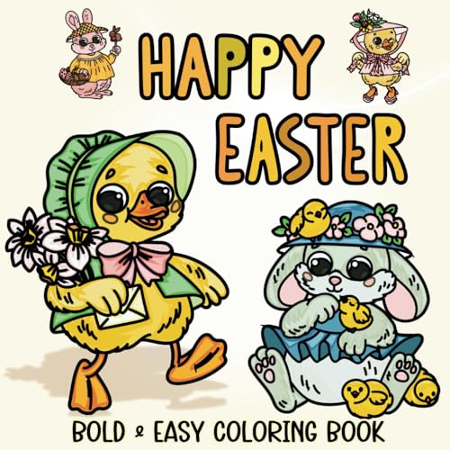 Happy Easter Bold and Easy Coloring Book: Cute and Simple Large Print Easter and Spring Illustrations for Kids, Teens, and Adults