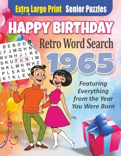 Happy Birthday Word Search 1965: Extra Large Print Puzzle Book for Seniors: Celebrate the Year You Were Born with Fun & Easy-to-Read Word Searches ... Events, Music, Slang, and Culture from 1965