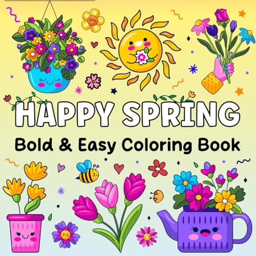 Happy Spring: Bold & Easy Coloring Book: Adult Coloring Book With Simple, Thick Lines and Large Print Spring Designs with Flowers & Animals for Stress Relief and Relaxation