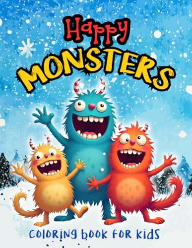 HAPPY MONSTER : Winter Coloring Book for Kids | Cute and Funny Monsters in the Winter :: 30 Cute Large Print Designs with Thick Lines Featuring Holiday Season Images to Color and Relax